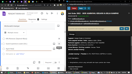 - Add new vacancy and company on Google Form for Karnival Kerjaya & Belia Kampar